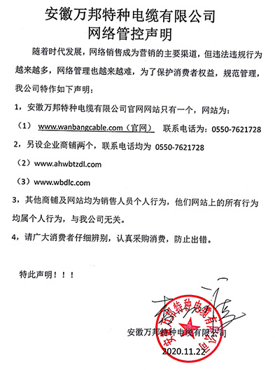 - 安徽萬(wàn)邦特種電纜有限公司技術(shù)力量厚,生產(chǎn)工藝好,檢測(cè)設(shè)備完善,質(zhì)量高,管理科學(xué),品種繁多......查看詳細(xì)